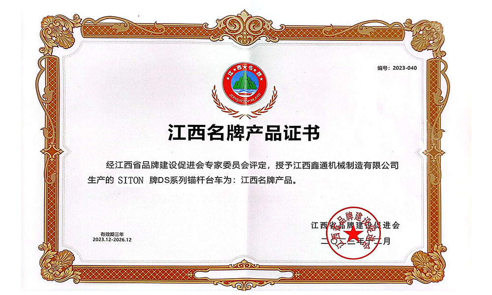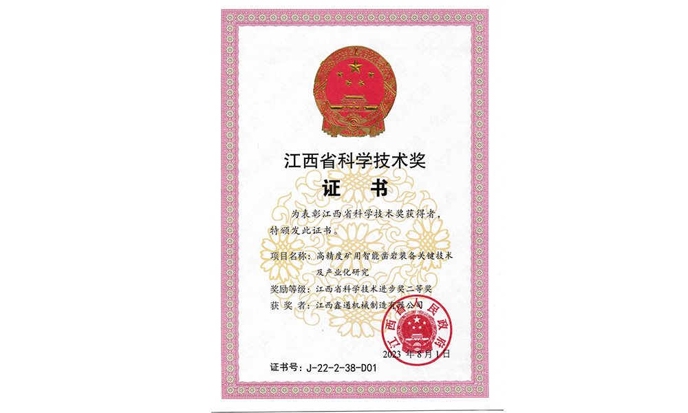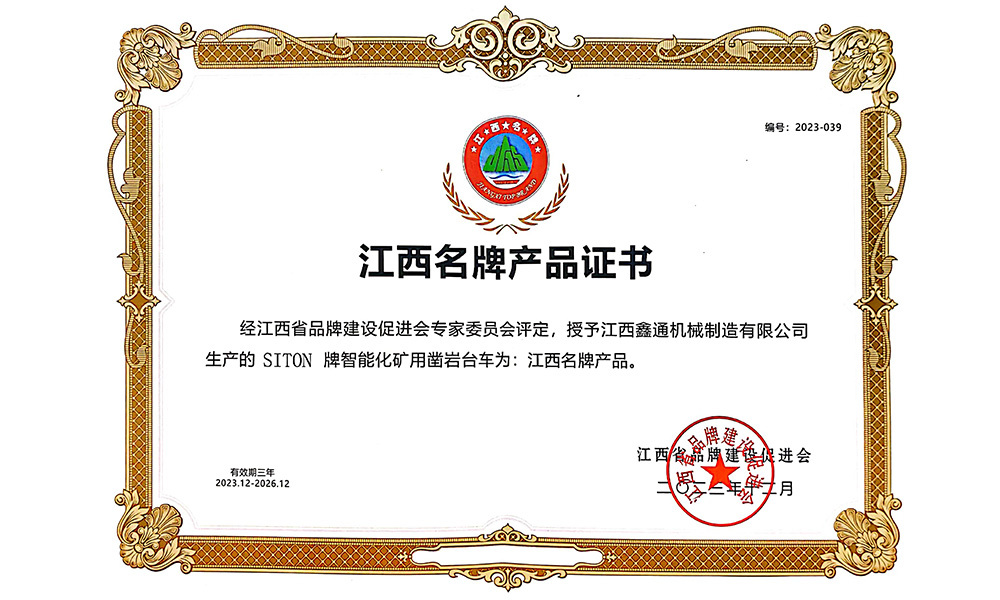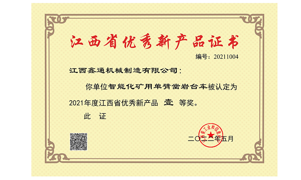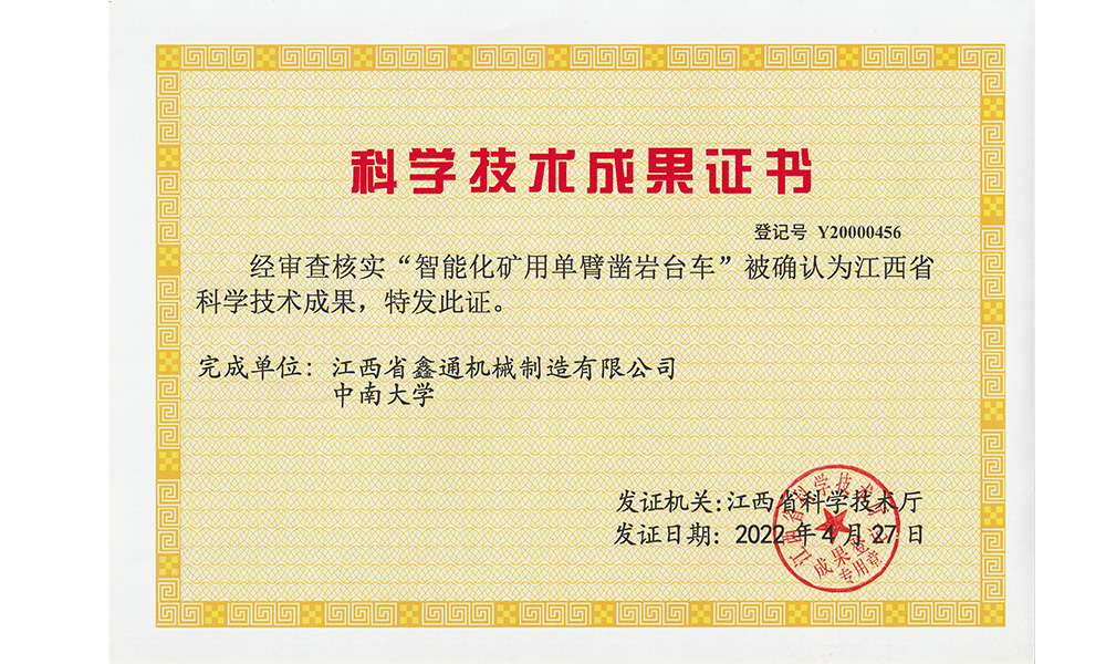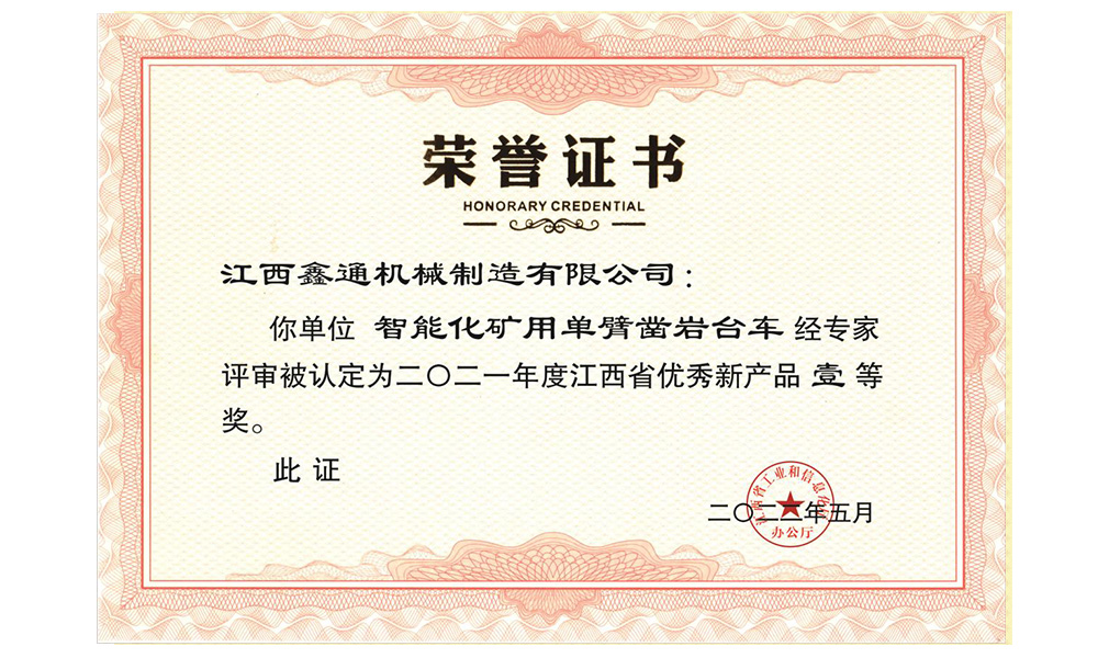 智能化礦用單臂鑿巖臺(tái)車榮譽(yù)證書