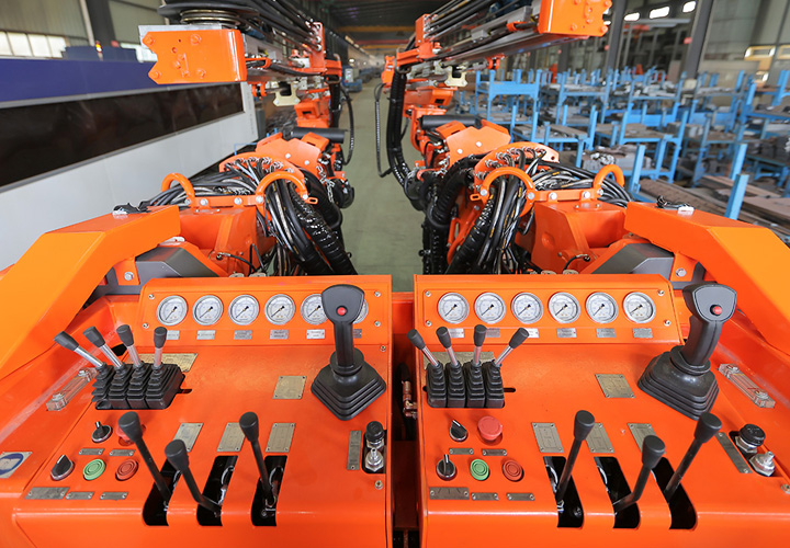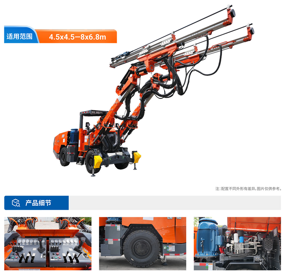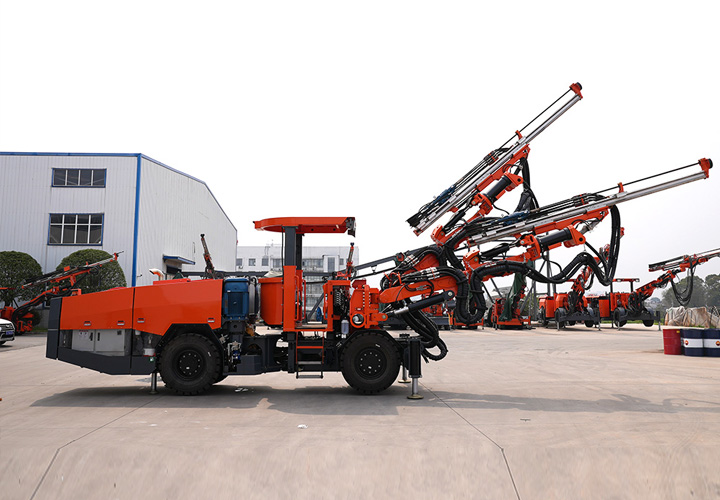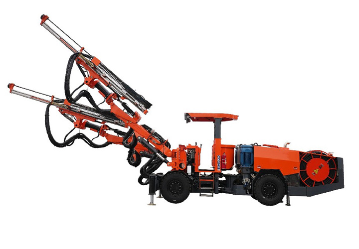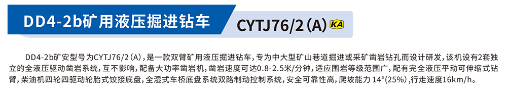 DD4-2b礦安型號為CYTJ76/2(A),是一款雙臂礦用液壓掘進(jìn)鉆車,專為中大型礦山巷道掘進(jìn)或采礦鑿巖鉆孔而設(shè)計研發(fā),該機(jī)設(shè)有2套獨立的全液壓驅(qū)動鑿巖系統(tǒng),互不影響,配備大功率鑿巖機(jī),鑿巖速度可達(dá)0.8-2.5米/分鐘,適應(yīng)圍巖等級范圍廣,配有完全液壓平動可伸縮式鉆降,柴油機(jī)四輪四驅(qū)動輪胎式餃接底盤,全濕式車橋底盤系統(tǒng)雙路制動控制系統(tǒng),安全可靠性高,爬坡能力 14°(25%),行走速度16km/h。