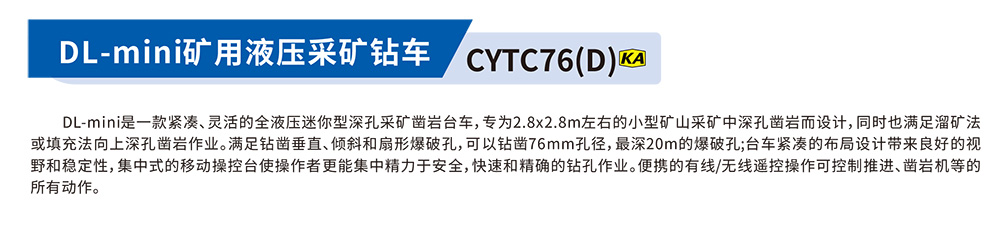 DL-mini是一款緊湊、靈活的全液壓迷你型深孔采礦鑿巖臺車,專為2.8x2.8m左右的小型礦山采礦中深孔鑿巖而設(shè)計(jì),同時(shí)也滿足溜礦法或填充法向上深孔鑿巖作業(yè)。滿足鉆鑿垂直、傾斜和扇形爆破孔,可以鉆鑿76mm孔徑,最深20m的爆破孔;臺車緊湊的布局設(shè)計(jì)帶來良好的視野和穩(wěn)定性,集中式的移動操控臺使操作者更能集中精力于安全,快速和精確的鉆孔作業(yè)。便攜的有線/無線遙控操作可控制推進(jìn)、鑿巖機(jī)等的所有動作。