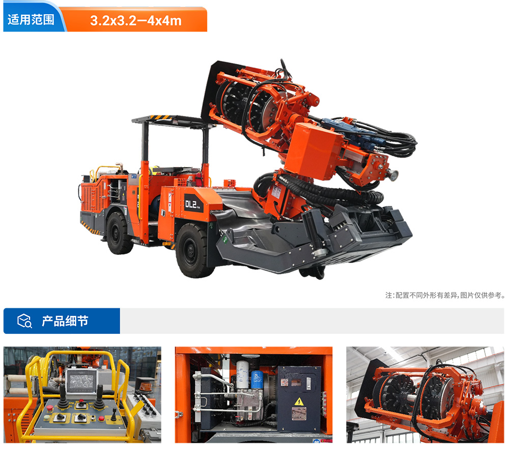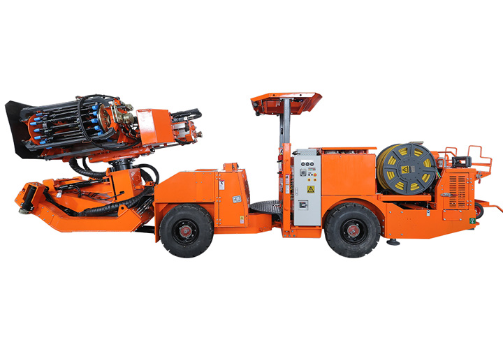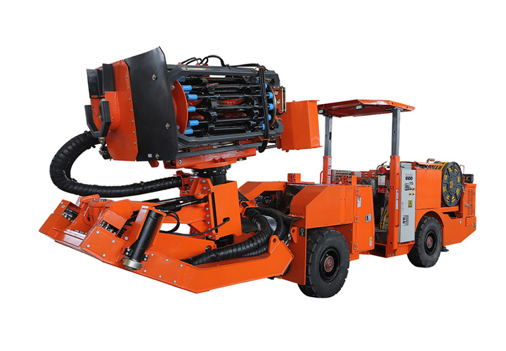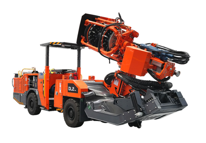 DL2-hs礦用液壓采礦鉆車(又稱深孔鑿巖臺(tái)車或采礦臺(tái)車)是一款專為3.2-4M間巷道研發(fā)的小機(jī)身大桿庫容量專用型深孔鑿巖設(shè)備,不僅在小巷道中行走轉(zhuǎn)場(chǎng)靈活,同時(shí)解決了中小型巷道因規(guī)格小設(shè)備受空間影響不能完全自動(dòng)化接桿卸桿的問題,采用27+1根大型桿庫實(shí)現(xiàn)小巷道也能全機(jī)械化自動(dòng)接桿鑿巖。在地下礦山生產(chǎn)中深鉆孔作業(yè),滿足鉆鑿垂直、扇形以及平行布置中深孔施工,采用全液壓驅(qū)動(dòng)鑿巖,根據(jù)用戶需求可選擇915mm、1220mm等規(guī)格鉆桿,可以鉆鑿64-89mm孔徑,一次鑿巖深度達(dá)30余米,大前又式鉆臂托架設(shè)計(jì)保證了推進(jìn)梁的精確定位和穩(wěn)定的支撐,確保高質(zhì)量的鉆孔。柴油機(jī)四輪驅(qū)動(dòng)輪胎底盤行走,爬坡14”,電比例負(fù)載敏感液壓系統(tǒng)鉆鑿全電控移動(dòng)式遠(yuǎn)程遙控控制。
