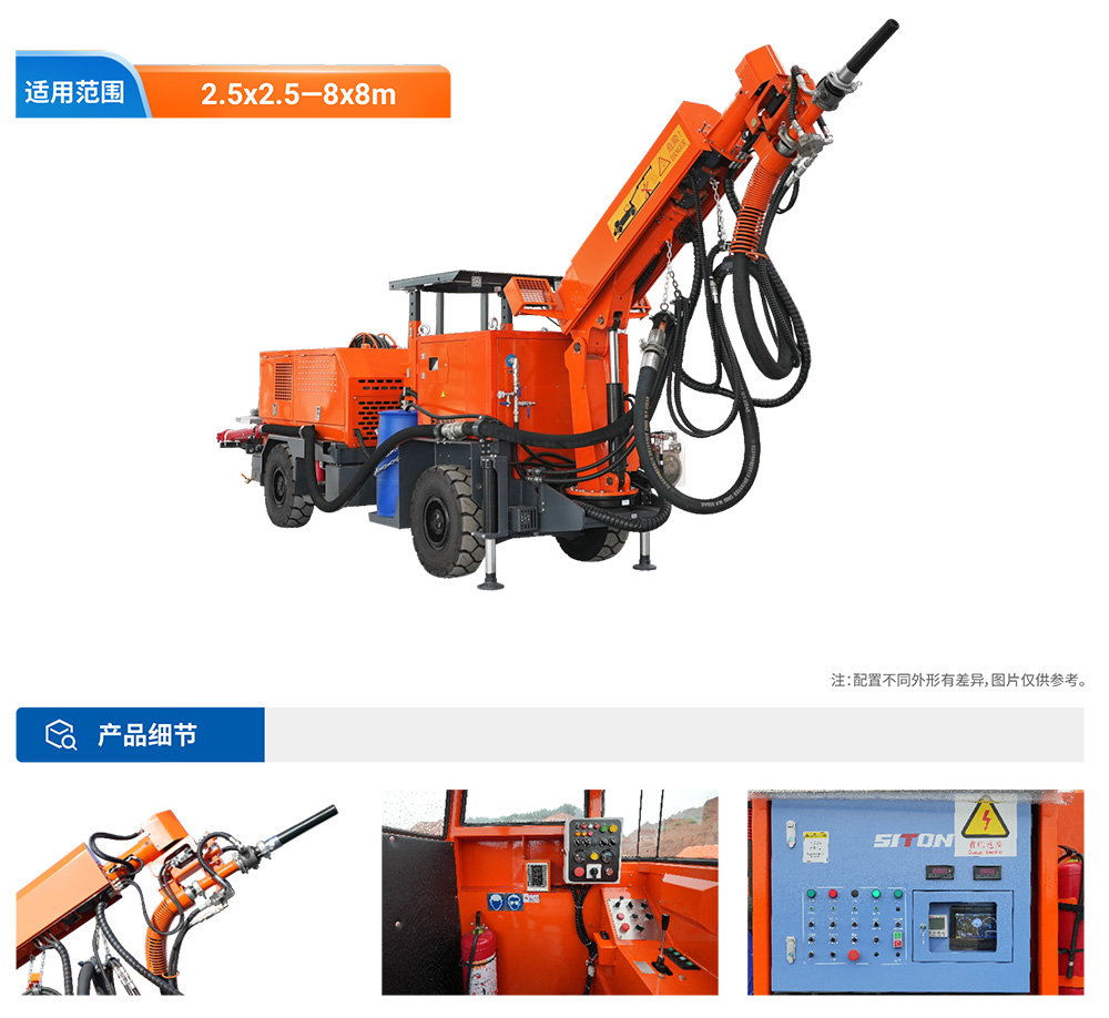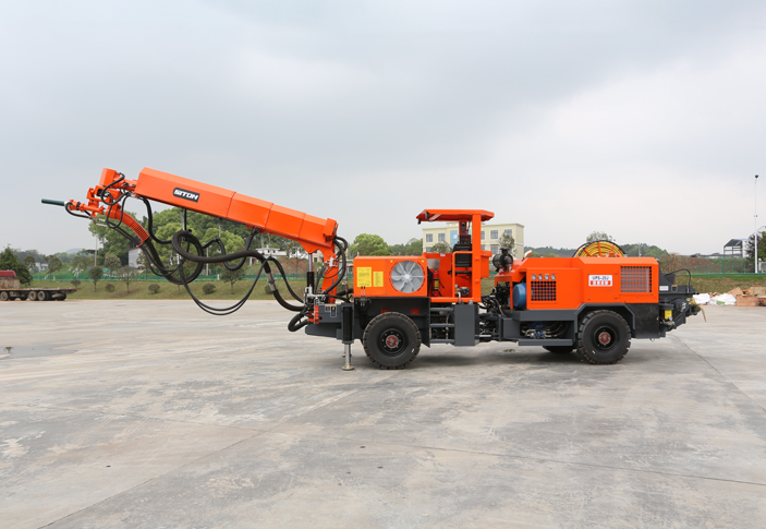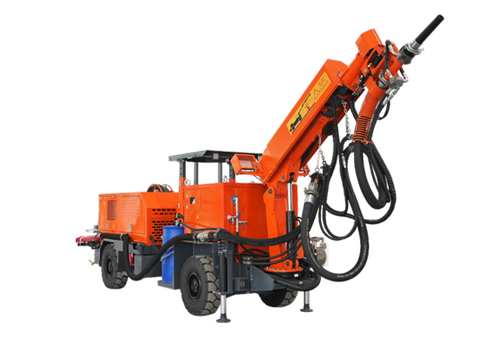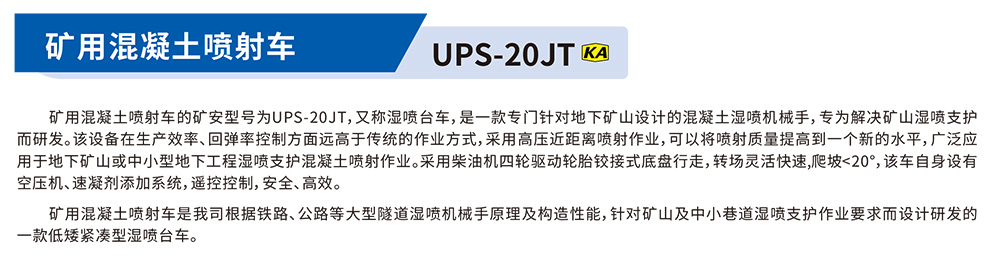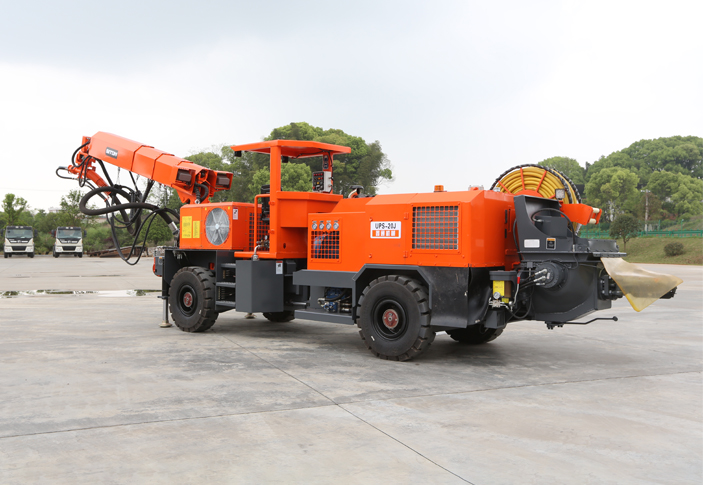 礦用混凝土噴射車的礦安型號為UPS-20JT,又稱濕噴臺車,是一款專門針對地下礦山設(shè)計(jì)的混凝土濕噴機(jī)械手,專為解決礦山濕噴支護(hù)而研發(fā)。該設(shè)備在生產(chǎn)效率、回彈率控制方面遠(yuǎn)高于傳統(tǒng)的作業(yè)方式,采用高壓近距離噴射作業(yè),可以將噴射質(zhì)量提高到一個新的水平,廣泛應(yīng)用于地下礦山或中小型地下工程濕噴支護(hù)混凝土噴射作業(yè)。采用柴油機(jī)四輪驅(qū)動輪胎鉸接式底盤行走,轉(zhuǎn)場靈活快速,爬坡<20”,該車自身設(shè)有空壓機(jī)、速凝劑添加系統(tǒng),遙控控制,安全、高效。礦用混凝土噴射車是我司根據(jù)鐵路、公路等大型隧道濕噴機(jī)械手原理及構(gòu)造性能,針對礦山及中小巷道濕噴支護(hù)作業(yè)要求而設(shè)計(jì)研發(fā)的款低矮緊湊型濕噴臺車。