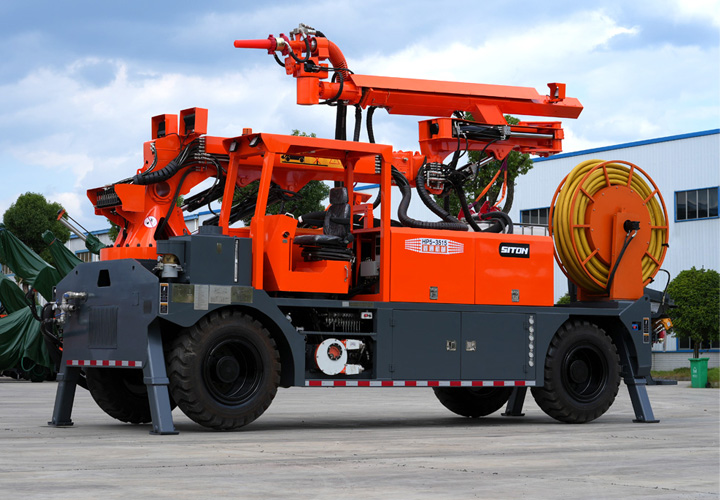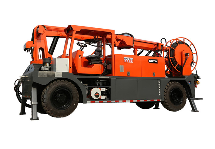 HP5-3515工程橋式濕噴臺(tái)車(大方量)每小時(shí)方量提高到35方,可選配大型空壓機(jī),四輪四轉(zhuǎn)向,濕式驅(qū)動(dòng)橋,改善了隧道內(nèi)部混凝土噴射施工人員的工作環(huán)境,提高施工效率,減少混凝土消耗量,切實(shí)保障施工質(zhì)量,雙動(dòng)力工作系統(tǒng),更低碳排放,更切合環(huán)保理念。是水利水電、鐵路、公路等隧道施工的選擇,HP5濕噴臺(tái)車平行作業(yè)工作范圍寬26mx高15m巷道,每小時(shí)可噴>35m?,行走在20°坡度內(nèi)??蓢婍敯睢?cè)邦、底板、掌子面任意位置無死角噴射:該機(jī),作業(yè)機(jī)構(gòu)采用全液壓驅(qū)動(dòng),柴油動(dòng)力行走,自動(dòng)摻量速凝劑。