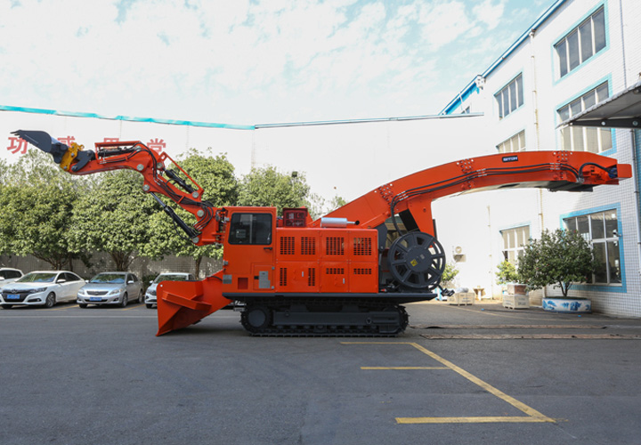 中大型履帶式挖掘裝載機(jī)(扒渣機(jī))主要以180-360型為主,為大型地下隧道如引水、國防、高速或高鐵輔助隧道快速裝載而設(shè)計(jì)研發(fā),裝載連續(xù)性較強(qiáng)等特點(diǎn), 設(shè)有大坡度專用機(jī)型、雙動(dòng)力、高原用等多種功能機(jī)型可選擇??梢匀珨嗝婀ぷ?,不留死角,無需人工輔助清理工作面。運(yùn)渣采用鏈條刮板式,輸送運(yùn)轉(zhuǎn)平穩(wěn),排渣能力強(qiáng),且采用半封閉式裝配方式,維護(hù)方便。